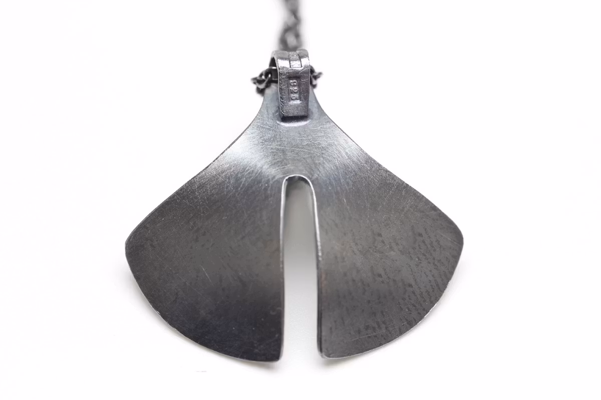 Ginkgo - Svartoxiderat silver 1 400 SEK Ginkgo - Hängsmycke i oxiderat silver. 42 eller 45 cm kedja. Längd på kedja 42 cm 45 cm I lager. Lägg i korgen Dela Artikelnummer: 44 Information Ginkgo - Hängsmycke i oxiderat silver. 42 eller 45 cm kedja.